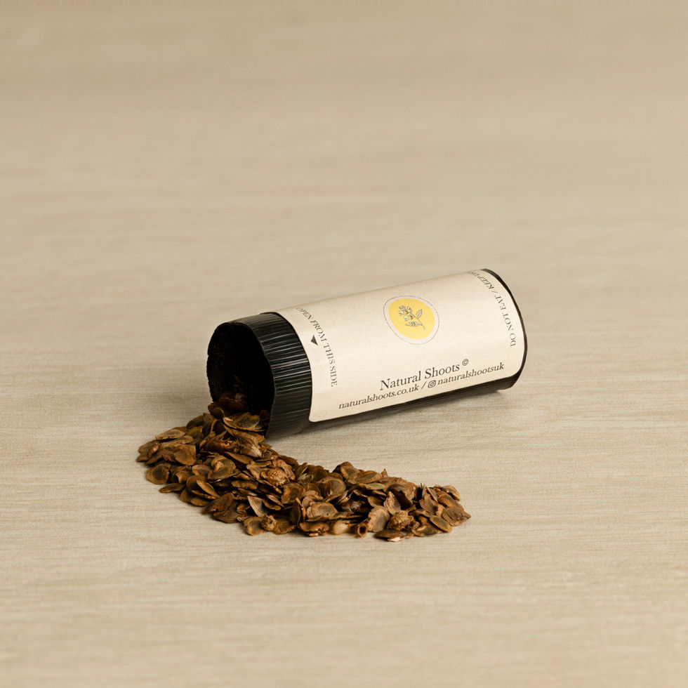 Each tube contains carefully selected Yellow Rattle seeds from the 2024 harvest, thoughtfully prepared in upcycled yellow plastic cartridge cases for you and nature to enjoy.